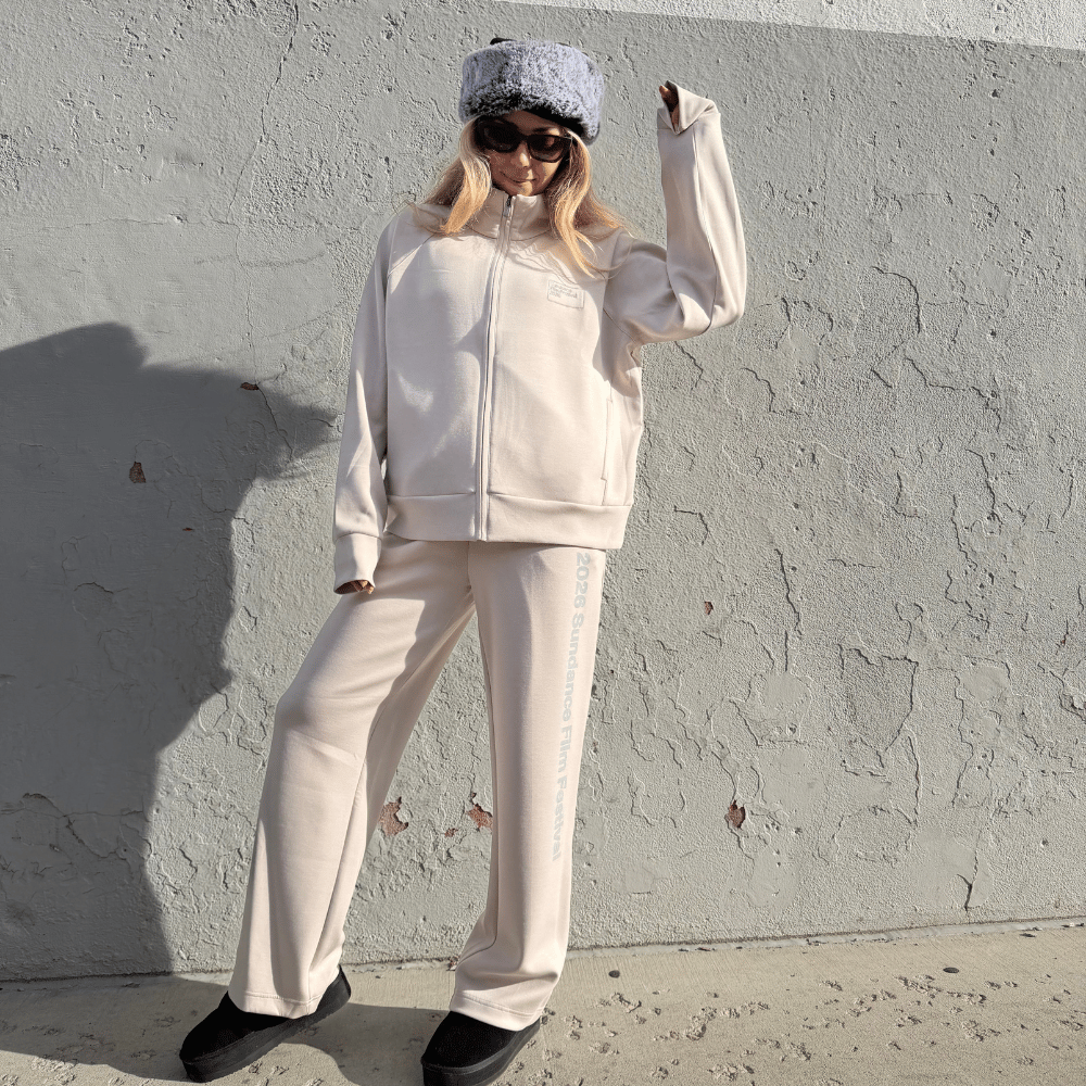 Keep cozy in style with our women’s liquid mercury performance fleece full zip and matching wide-leg pants. A versatile outer layer in a mineral colorway, this full zip jacket and relaxed-fit wide-leg pant come in a wrinkle-resistant scuba knit and feature our signature “2026 Sundance Film Festival” logo. |